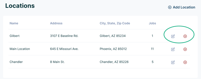 If you need to Edit or Delete an existing location in your account settings, click the three dots to the right of the location.